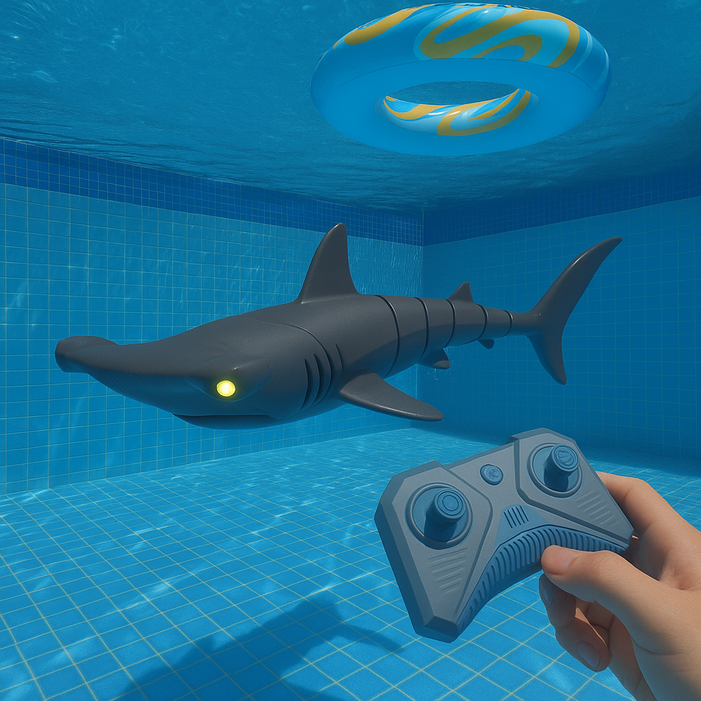 Turn your pool into an ocean adventure – control the shark, race with friends, and make unforgettable summer memories!
